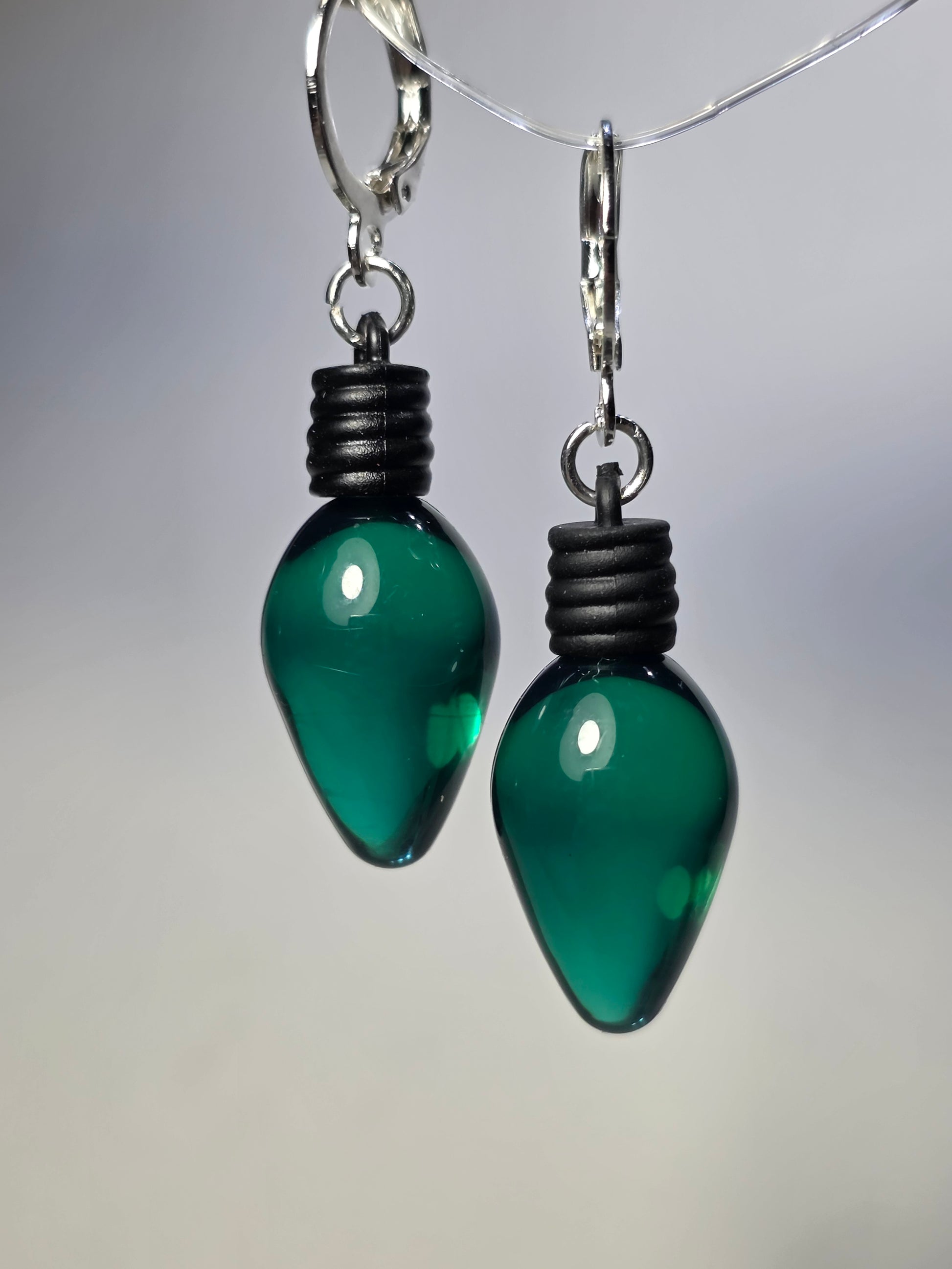 Green Christmas Light on Stainless Steal Earrings