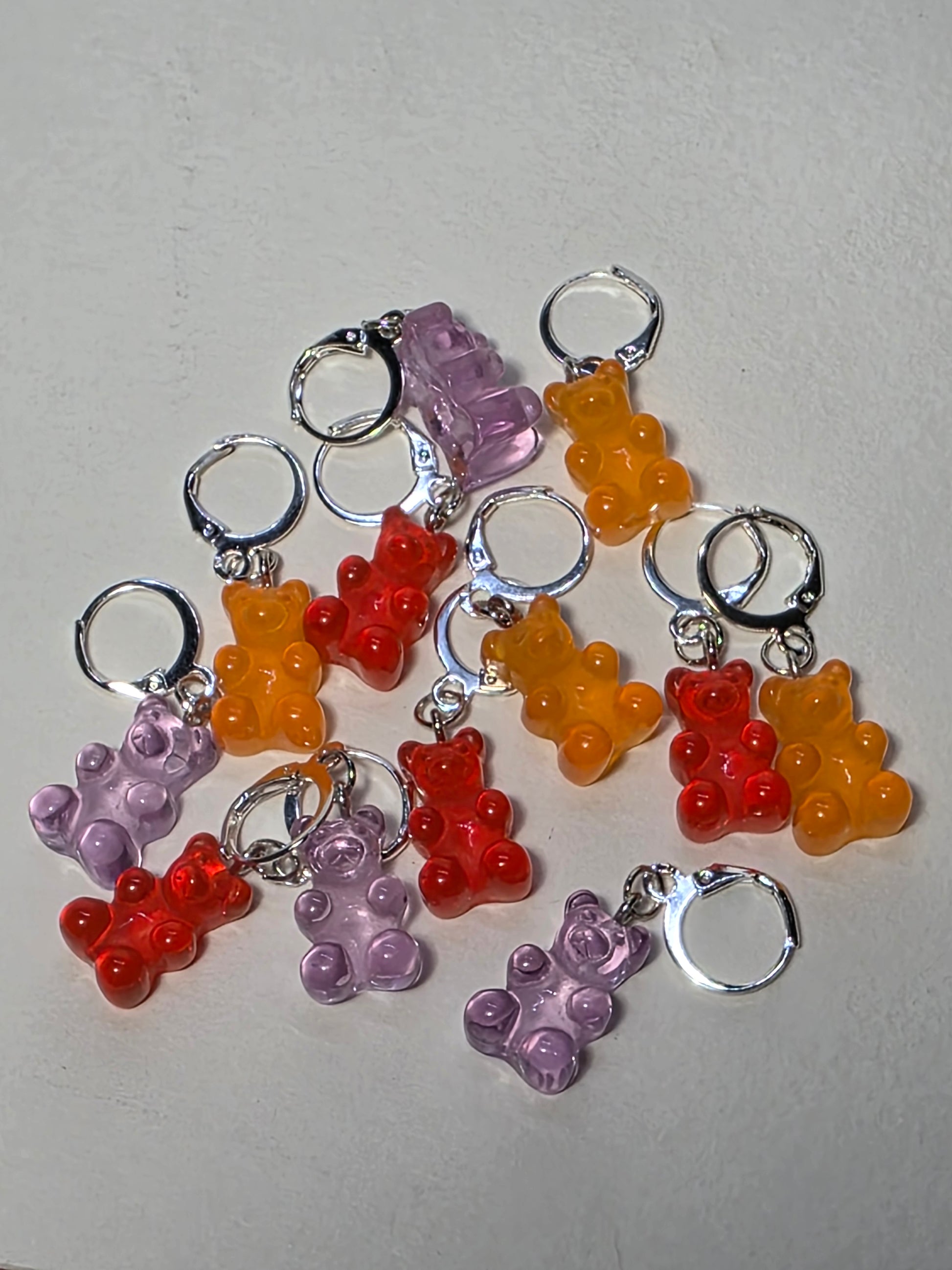 Gummy bear charm on a stainless steel earring
