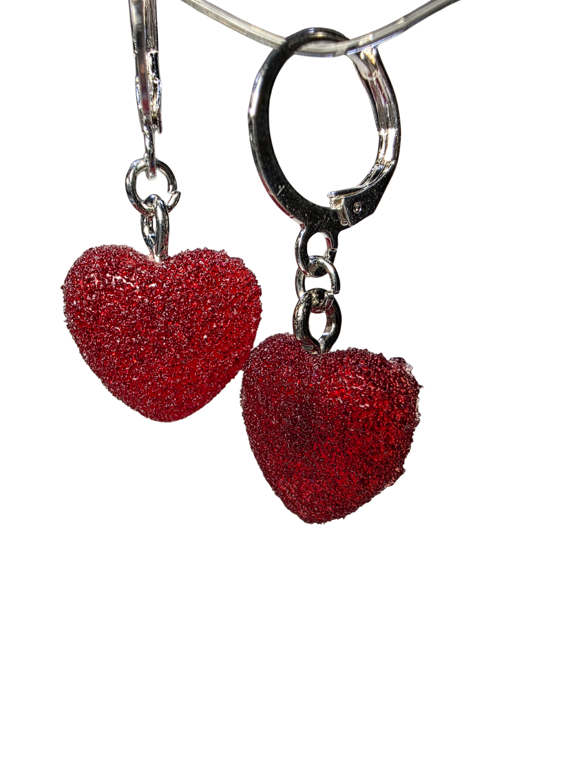 Handmade UV resin candy heart on a stainless steel earring